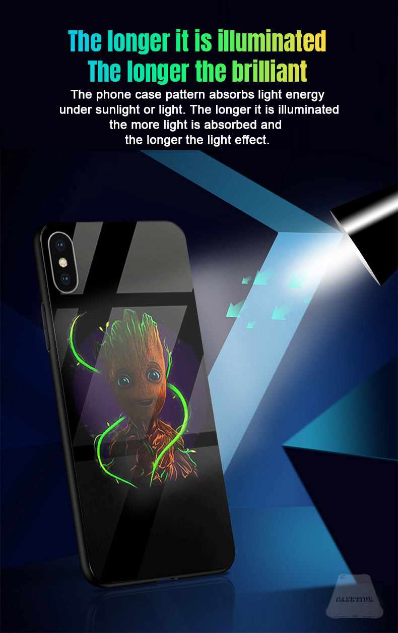 The phone case pattern absorbs light energy under sunlight or light. The longer it is